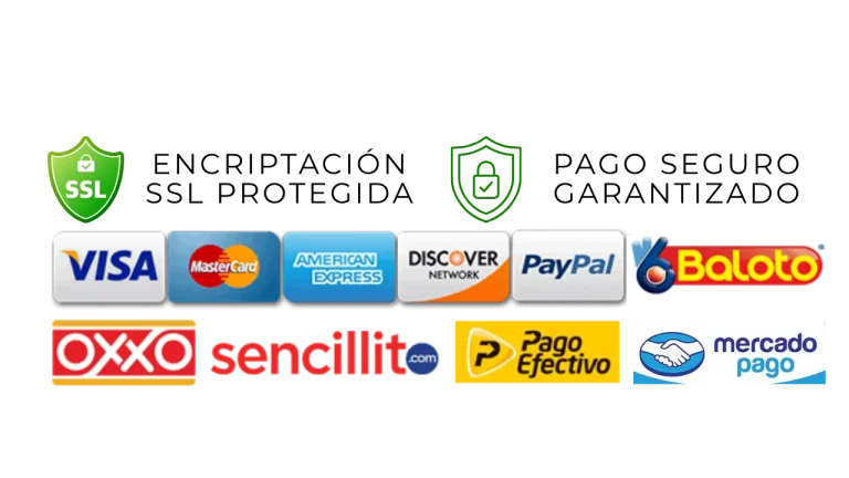 Contamos con certificado SSL y recibimos los pagos por medio de Stripe en más de 170 países a nivel mundial.