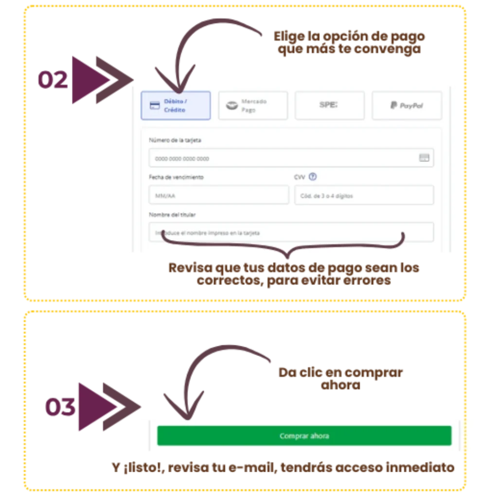 Recibirás el recetario en formato PDF, fácil de descargar y utilizar en tu celular, tablet o computadora. Si lo prefieres, también puedes imprimirlo para tenerlo siempre a la mano en tu cocina.