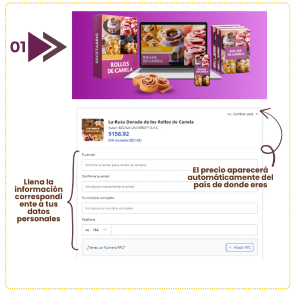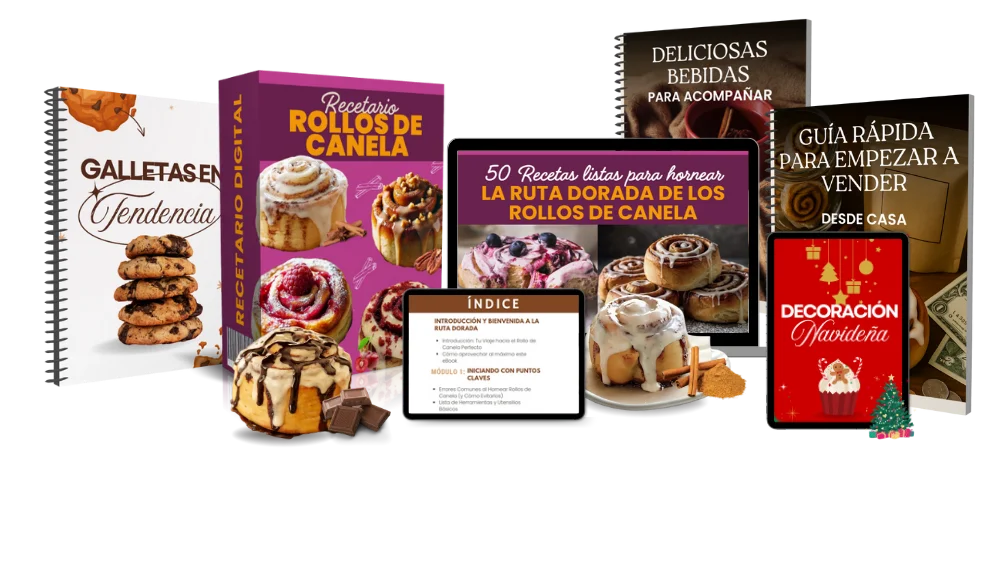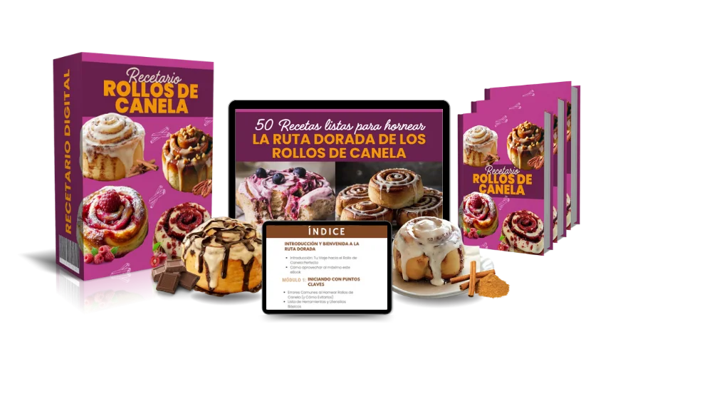 Queremos ayudarte a que tus roles salgan perfectos desde el primer intento. Por eso te ofrecemos este recetario digital con 50 recetas irresistibles de roles de canela listas para preparar y disfrutar, sin complicaciones.